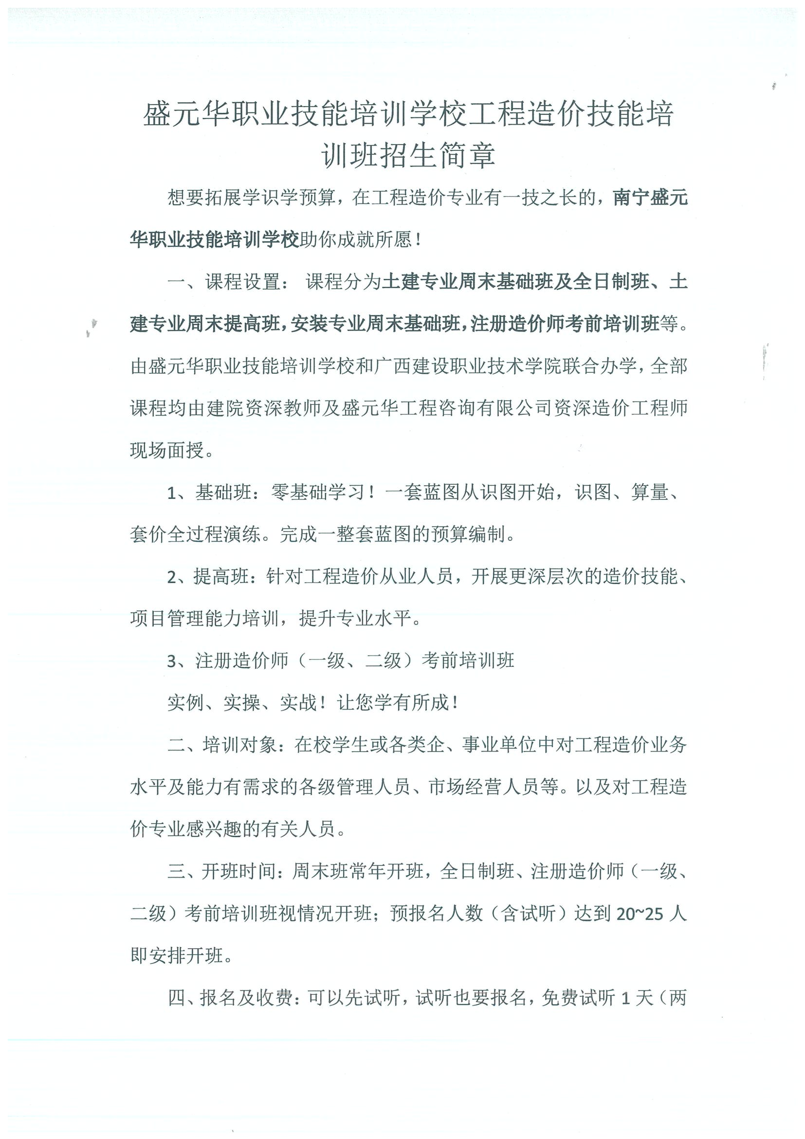 | 盛元華職業(yè)技能培訓(xùn)學(xué)校工程造價(jià)培訓(xùn)班辦學(xué)簡(jiǎn)報(bào)及招生簡(jiǎn)章 |