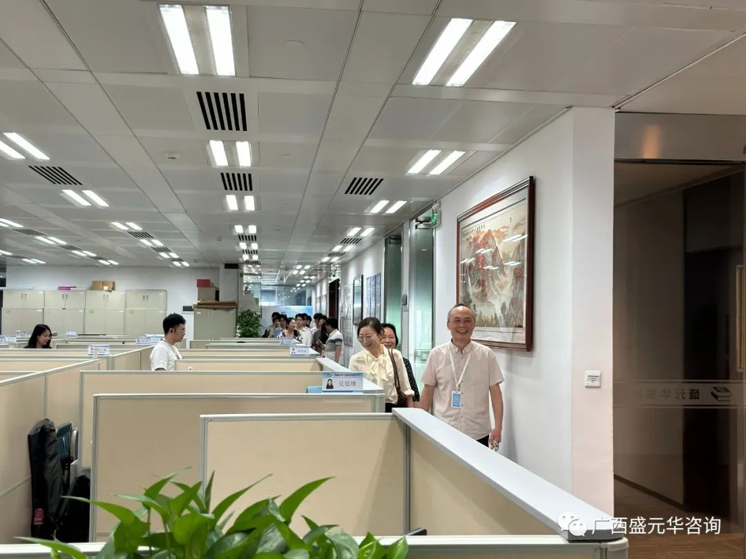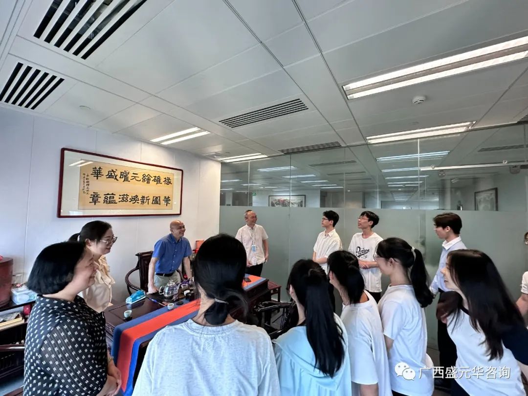 上午,由我集團(tuán)與建院管理學(xué)院、賀州學(xué)院三方辦學(xué)的工程造價(jià)專業(yè)2002班的學(xué)生們在建院管理學(xué)院羅輝副院長、教工第二黨支部周慧玲教授、王心月及封炫妃老師的帶領(lǐng)下到我集團(tuán)總部觀摩、交流。集團(tuán)副總經(jīng)理黃藝熱情迎接了到訪的各位師生,并帶師生們參觀了集團(tuán)總部的辦公場所、觀摩員工在各崗位的工作情況。集團(tuán)董事長方元煥在辦公室接待了各位師生們,并代表集團(tuán)上下對(duì)師生們的到訪、觀摩表示熱烈歡迎。